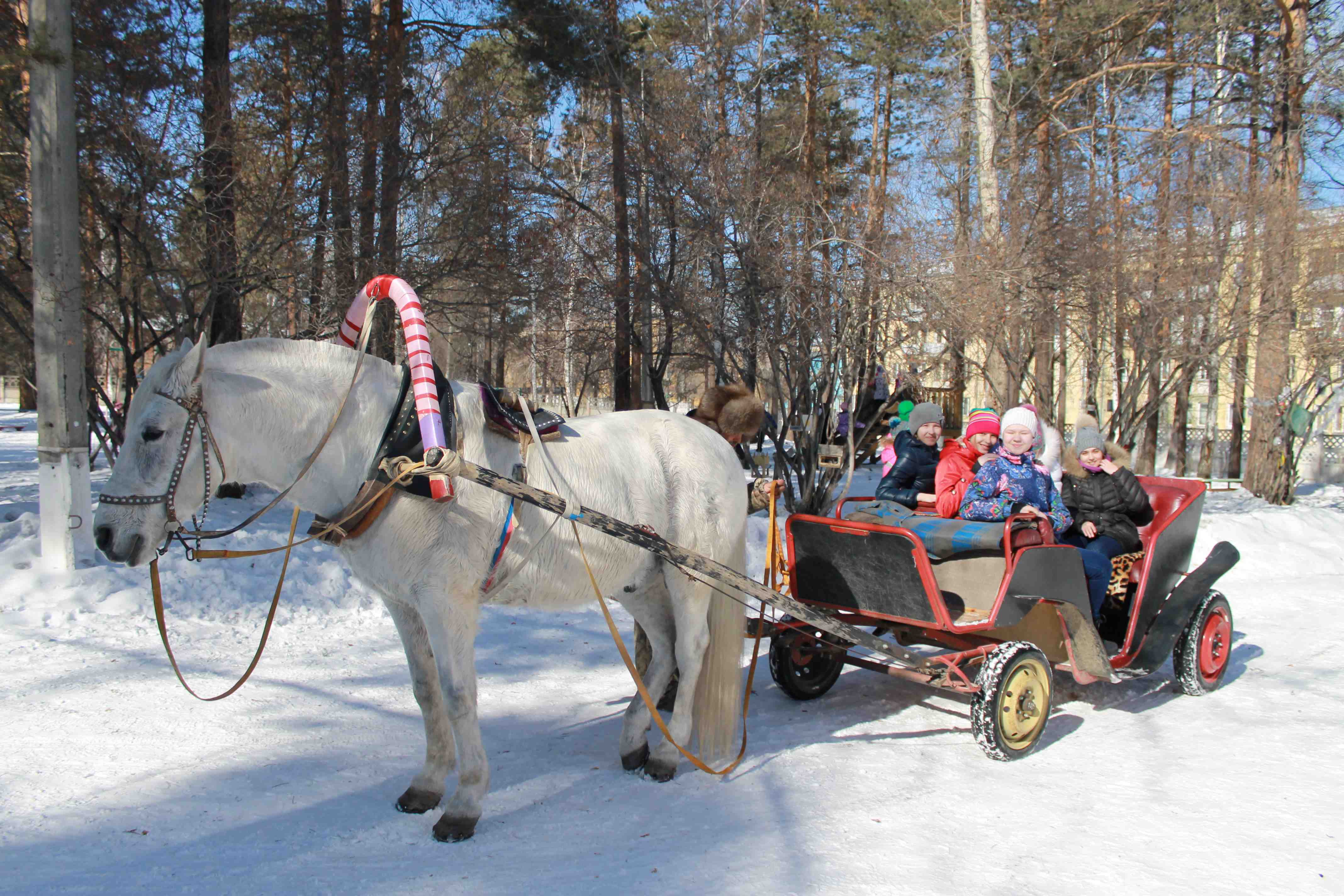 С 9 по 11 марта 2016 года в нашей школе прошли мероприятия посвященные Масленице. Программа праздника была разнообразной. В среду все ребята с удовольствием катались в карете, запряженной белоснежным конём. После прогулки благодарные ученики угостили Малыша хлебом (так звали жеребца).