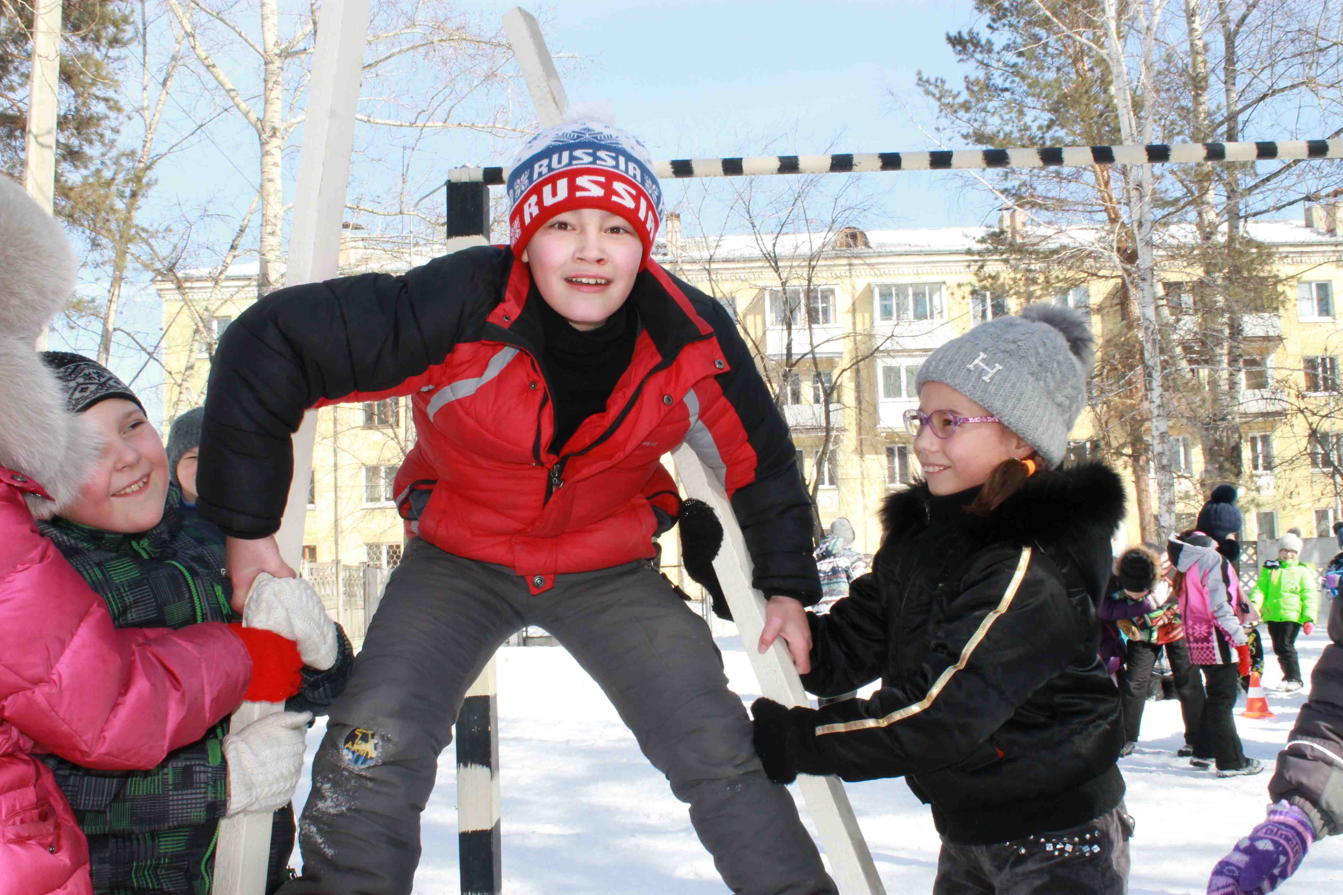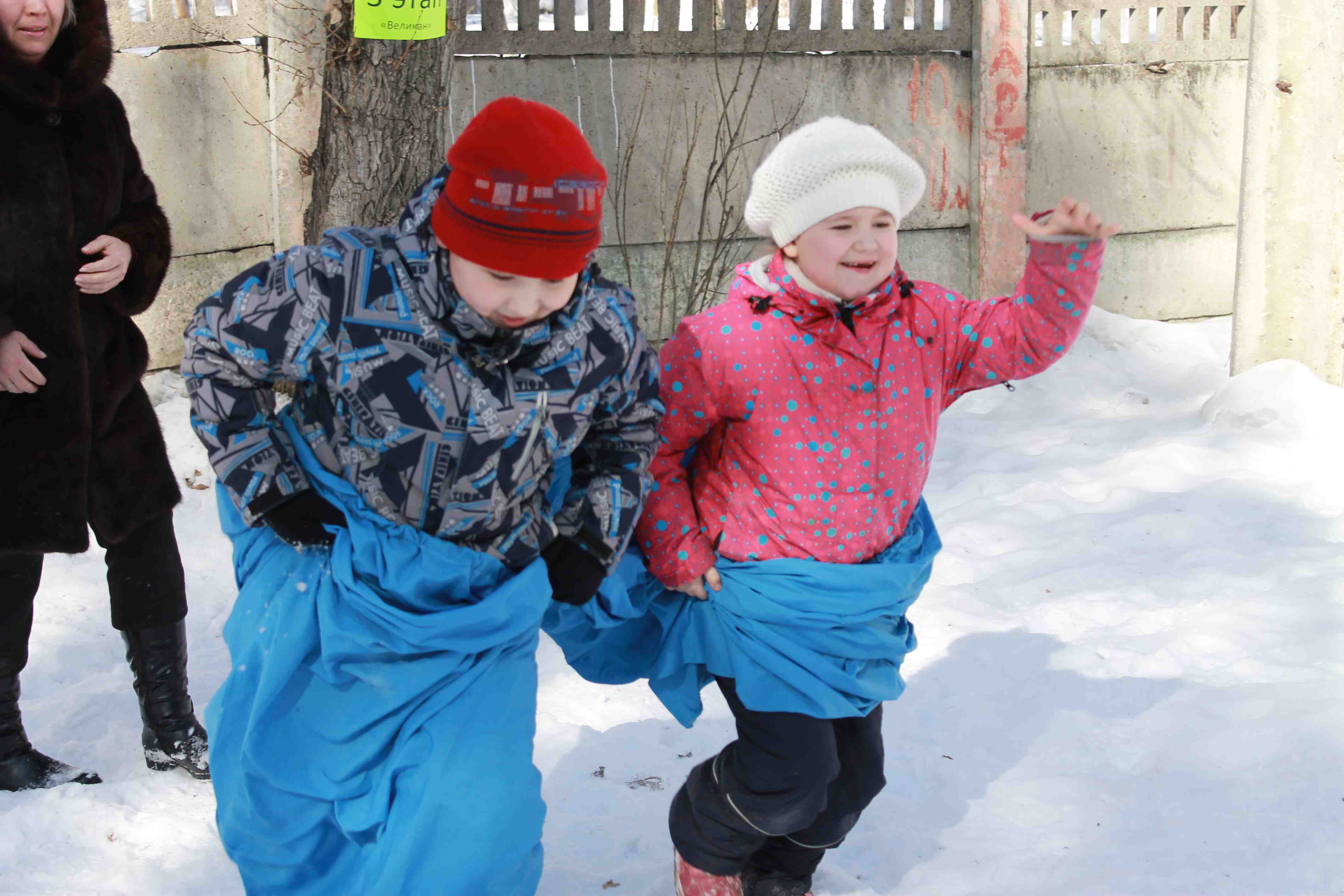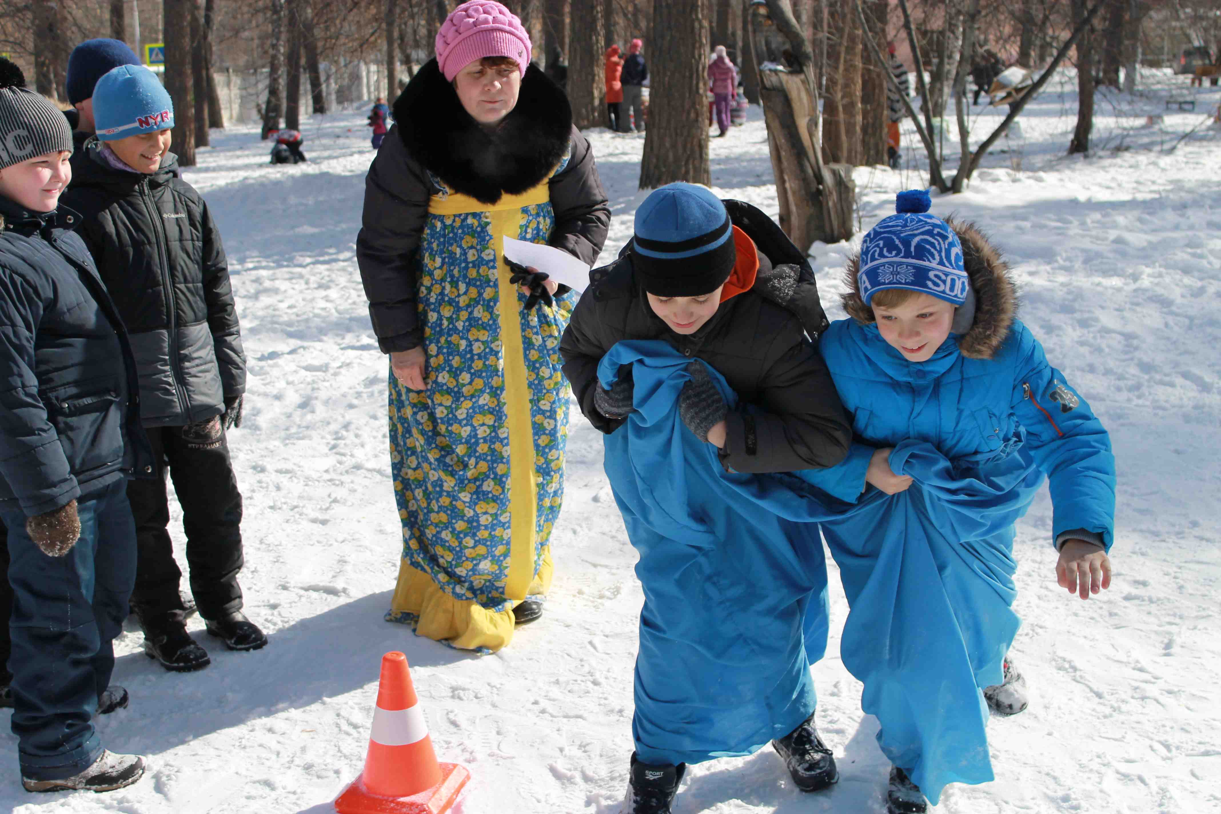 А в четверг на пришкольном участке было полно народу. Тут были и учащиеся, и учителя, и родители. Игры и забавы никого не оставили равнодушным! Все с большим удовольствием слушали народные песни, состязались в ловкости, быстроте и просто отдыхали. В программе были саночные гонки, перетягивание каната, хождение на ходулях, "Петушиные бои", бег в мешках, метание снежков, бой подушками.