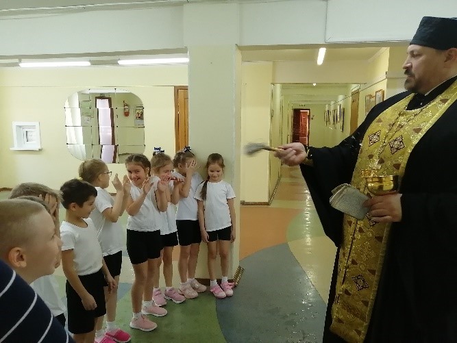 Сегодня в Православной школе совершен чин Великого освящения воды. После водосвятия о. Владимир щедро окропил каждый класс крещенской водой.