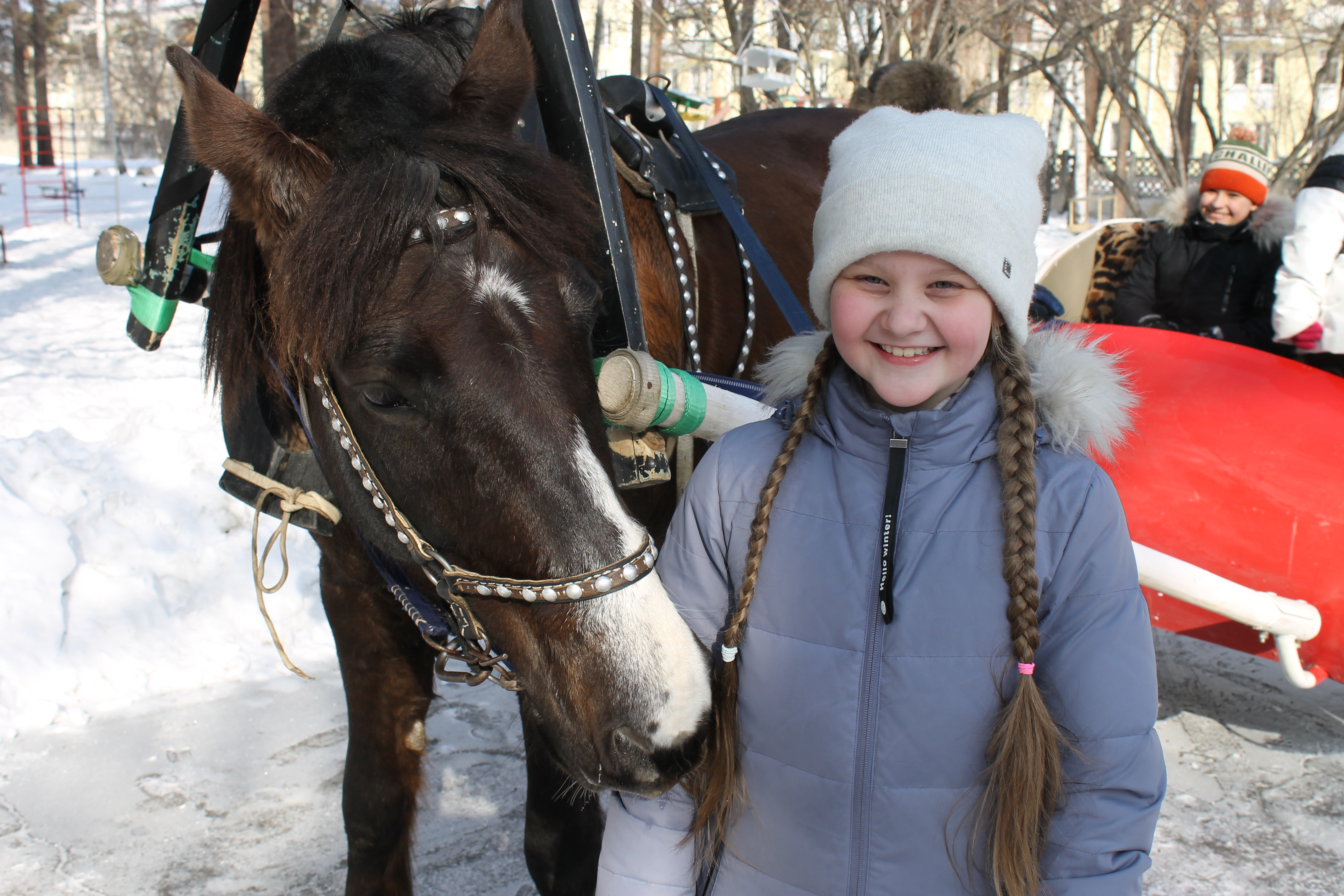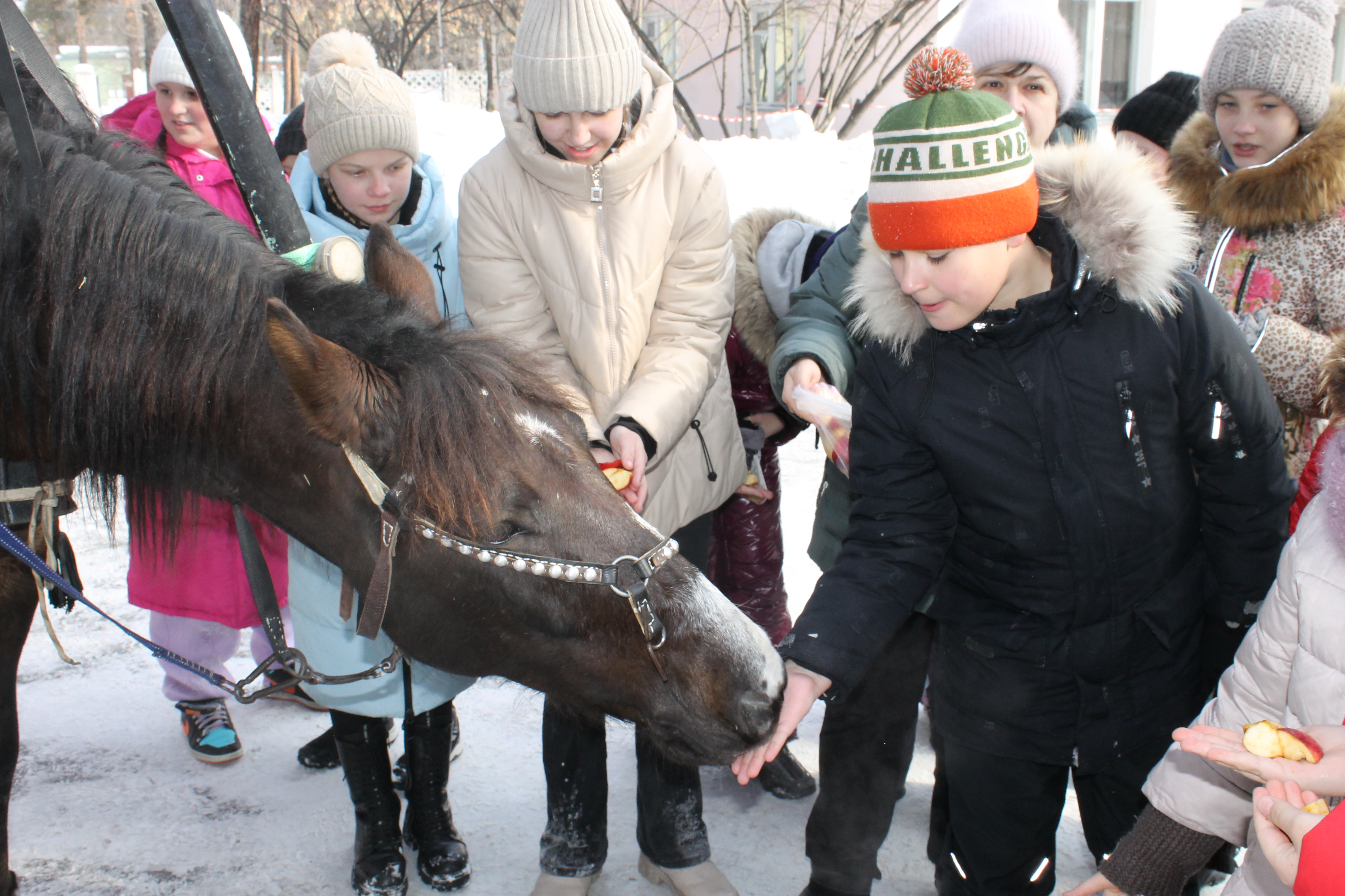 Вот и настала масленичная неделя, солнце засияло по-весеннему, повеяло теплом и веселым настроением! Каждый год в православной школе г. Ангарска на масленичной неделе дети катаются на лошади. Венера покорила сердца детей своим спокойствием и добродушным нравом. Дети получили массу положительных эмоций, потому что смогли покататься, покормить и погладить гостью.
