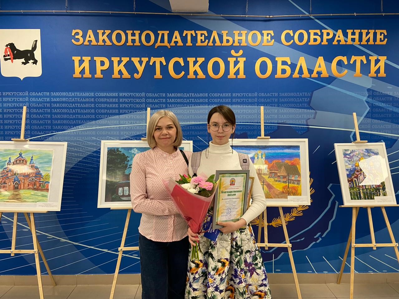 30 октября 2023 года, в рамках Иннокентьевских чтений - регионального этапа XXXII Международных Рождественских образовательных чтений, - в Законодательном Собрании Иркутской области была награждена ученица 9 класса нашей школы Анастасия Г. победитель регионального этапа международного конкурса детского творчества «Красота Божьего мира».