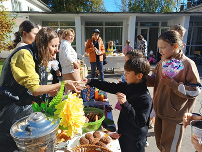 Погода в этот день выдалась замечательная. Все классы подготовили торговые места, где реализовывали домашние заготовки, выпечку, напитки, овощи и фрукты, цветы, поделки, кондитерскую выпечку и сладости. Это был настоящий праздник урожая и изобилия!