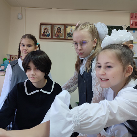 После долгожданного звонка на урок в гимназии наступила тишина. Ведь начались необычные уроки, на которых совсем ещё юные девчонки и мальчишки со всей ответственностью вели уроки в 1-8классах.