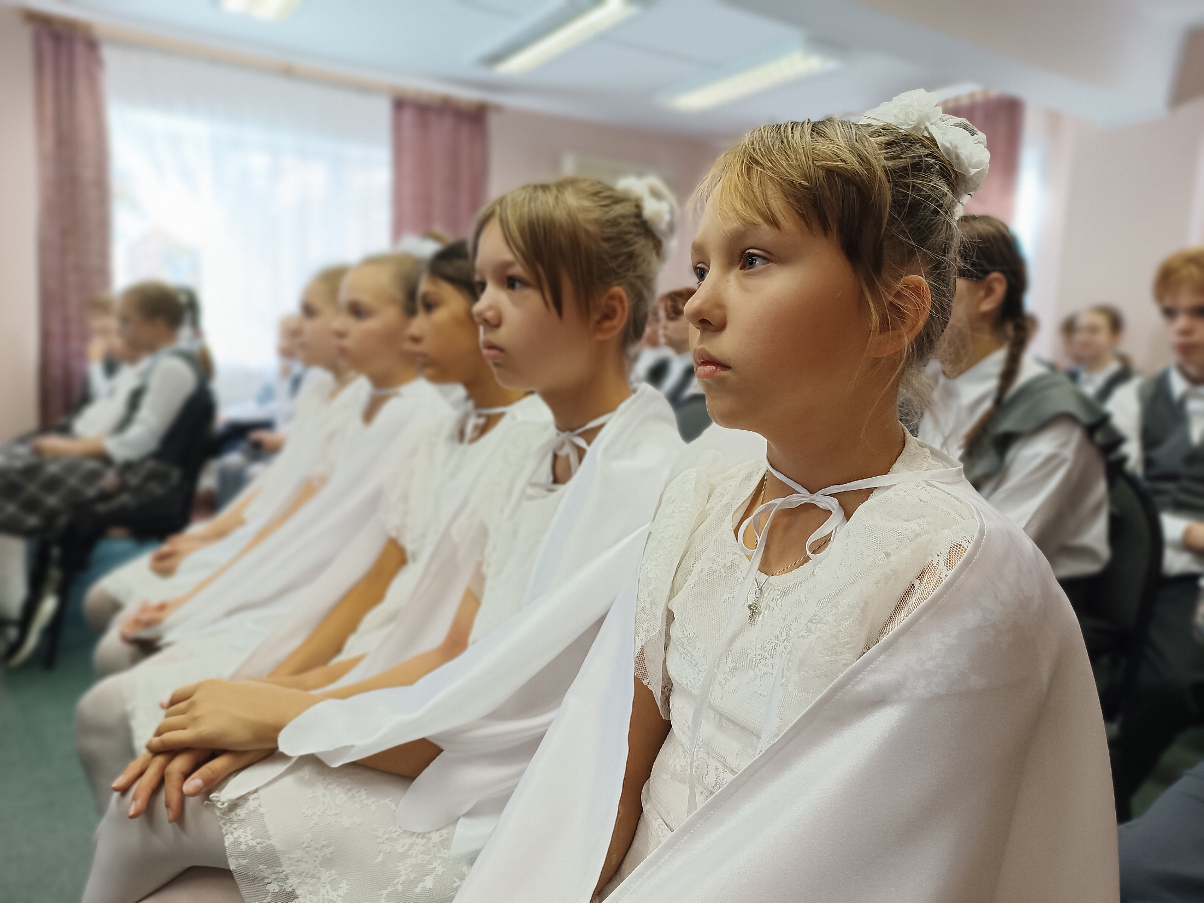Литературно-музыкальная композиция напомнила зрителям трагические страницы нашей истории: Великую Отечественную войну, Афганистан, Чечню, СВО. Боль и тревога звучали в стихотворных строках поэтов, в аккордах авторских песен. Хор православной гимназии трепетно исполнил песню «Журавли», а ученицы 4 класса украсили праздник танцем белых журавлей, напоминающих души погибших бойцов.