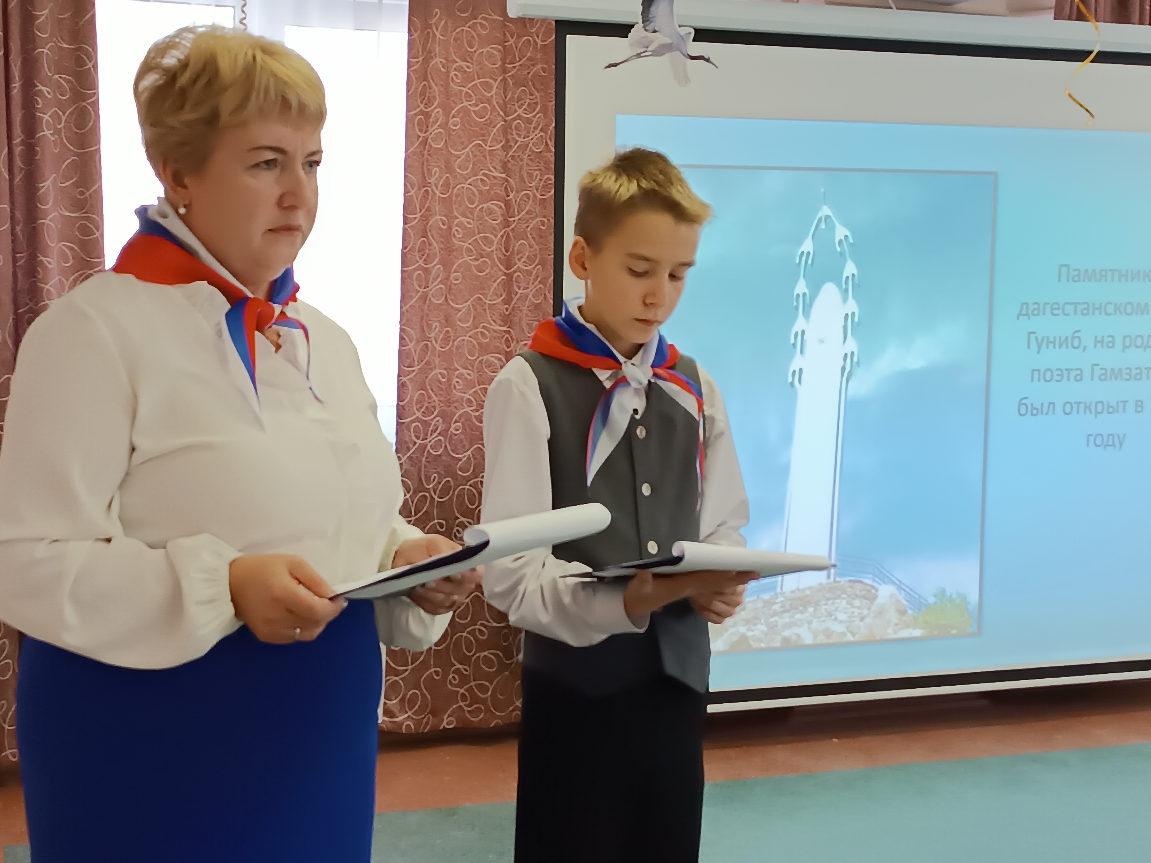 22 октября в нашей гимназии состоялся Праздник белых журавлей, приготовленный обучающимися 6 класса. Он посвящен памяти павших на полях сражений. Эта дата объединяет людей разных национальностей в стремлении к миру и сохранению памяти о тех, кто отдал свою жизнь за Родину. История Дня белых журавлей связана с именем дагестанского поэта Расула Гамзатова. В августе 1965 года, находясь в Хиросиме, потрясенный трагедией атомной бомбардировки, он увидел памятник японской девочке Садако Сасаки, ставшей жертвой лучевой болезни. Садако верила, что, если сложит тысячу бумажных журавликов, то выздоровеет.